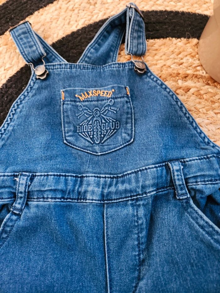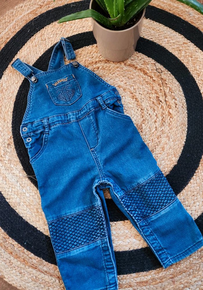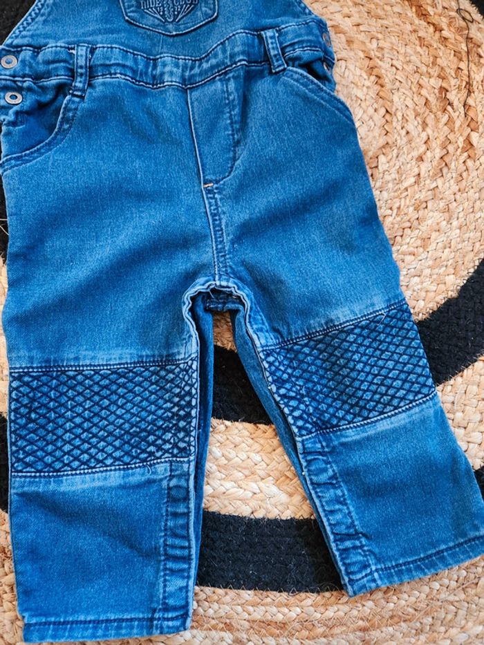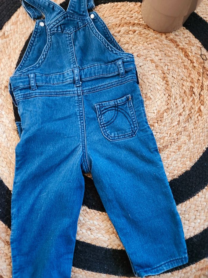Salopette en jean , 18 mois. Défaut sur la salopette voir dernière photo , c'est pour ça que je met bon état. #18moisgarçonninie02100