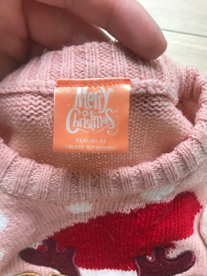 Pull de Noël 68-74 merry christmas rose renne bonnet Père Noël