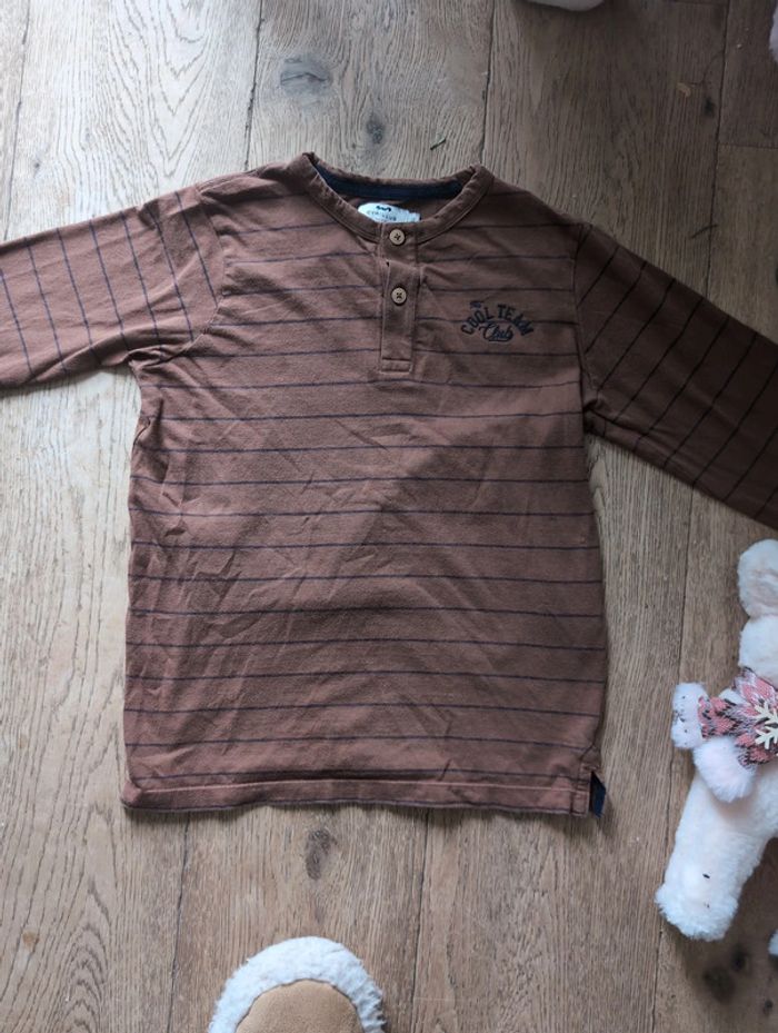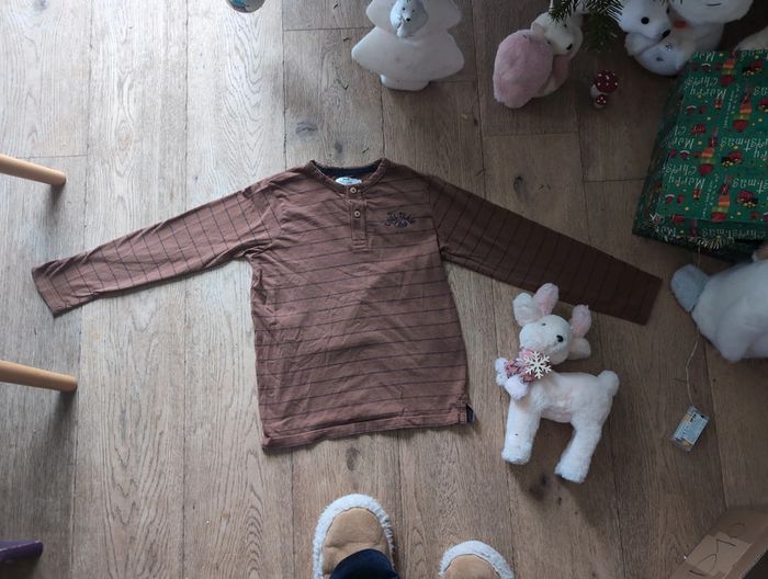 Tee shirt ML col tunisien rayé Cyrillus 10 ans - photo numéro 1