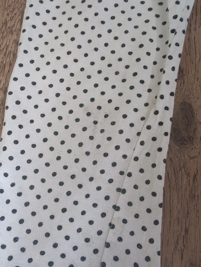 État satisfaisant : dessin abîmé, bouloches sur le pantalon, et une petit tâche sur le genou.droit. Par contre pas detendu. Ça fait un pyjama qui ne craint rien à petit prix !