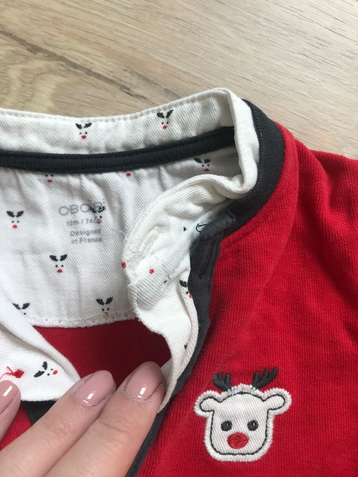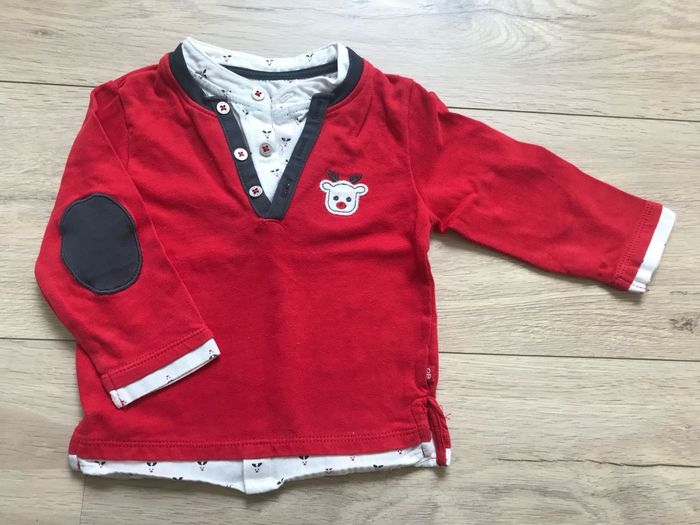 Tee shirt polo obaibi 12M manches longues rouge motif renne Noël