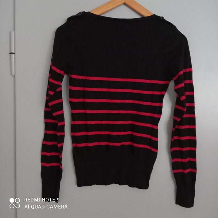 Pull noir à rayures rouges t34/36 - photo numéro 4