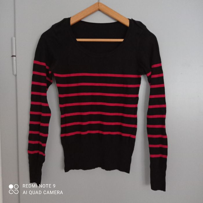 Pull noir à rayures rouges t34/36 - photo numéro 1