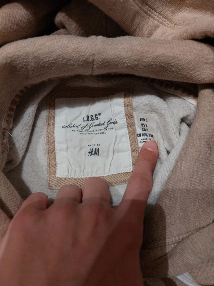 Sweat à capuche chaud (effet polaire à l'intérieur) beige de la marque H&M Taille S. Porté mais reste en bon état (élastiques manches un peu détendus)