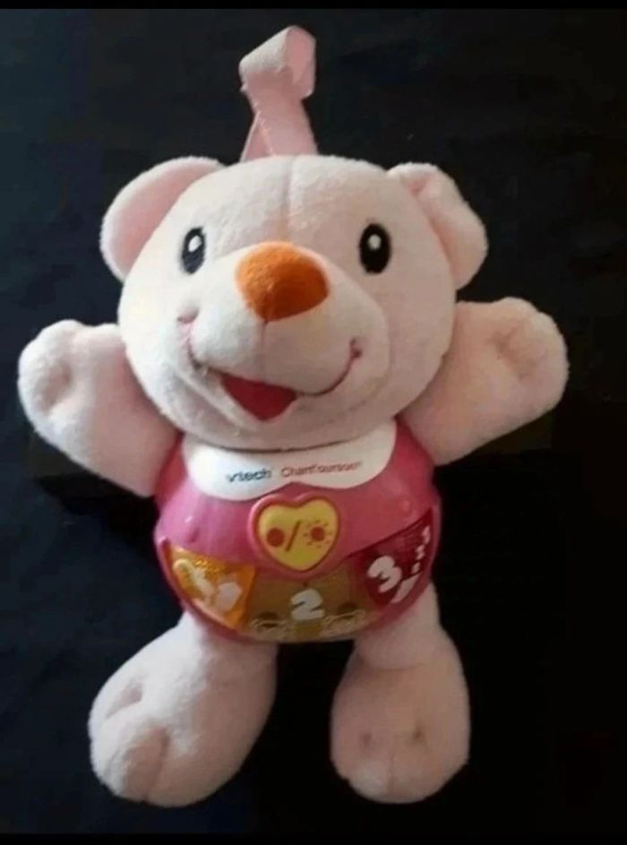 Pour bébé : un hochet musical et lumineux avec tête et petites pattes en tissu tout doux. Un ourson tout doux pour des câlins en musique! 3 boutons musicaux et lumineux pour éveiller bébé. S'attache, au lit au parc ou à la poussette grâce à sa sangle en tissu. 6 mélodies et 1 chanson en Anglais. Les enfants adorent. #marie69200jouets