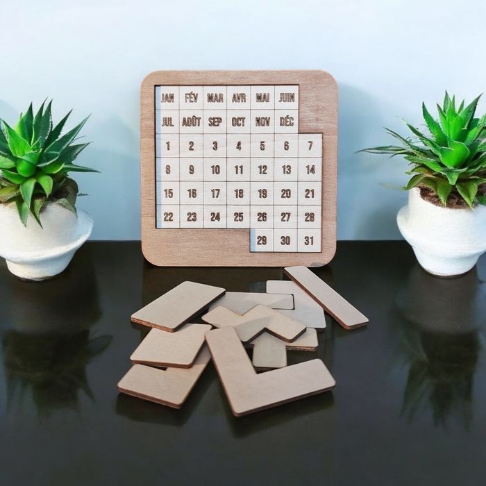 À la recherche d'un petit cadeau original ? Ce puzzle calendrier est parfait. Il permet de s'amuser chaque matin à retrouver la combinaison pour afficher la bonne date. ​Langue : Français (Mois abrégés : JAN, FÉV, MAR...) ​matériau : Bois clair gravé, très tendance. ​Envoi rapide et soigné. Dimensions : 10 x 10 cm