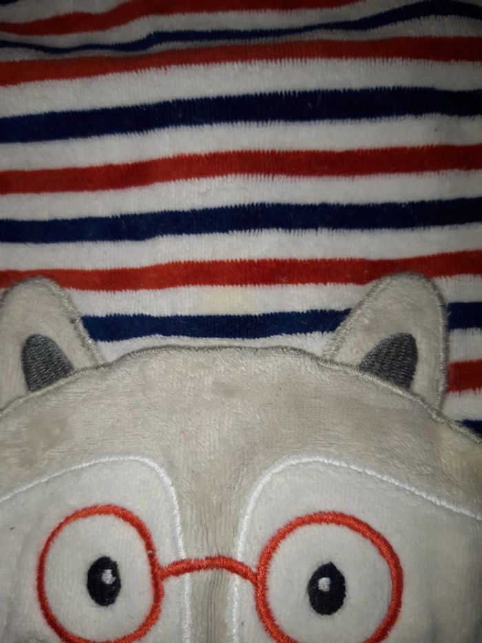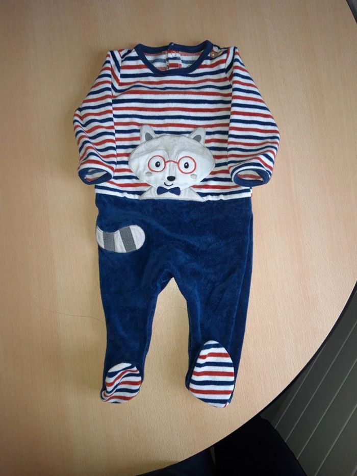 Légère auréole jaune entre les oreilles. Pyjama 1 pièce en velours
