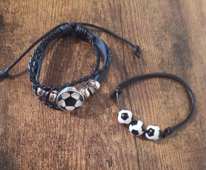 Idées cadeaux de Noël❤️ Lots de 2 bracelets Foot Le touts Neuf et emballé ! Prix: 6,50€ Disponible immédiatement Envoie rapide et soigné Profitez de remise sur l'achat d'un lot