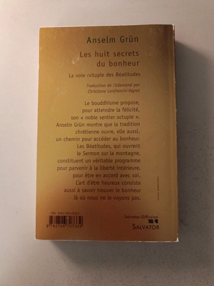 Anselm Grun Les 8 secrets du bonheur. Voici le lien pour voir tous mes livres pour réduire les frais de port et avoir des réductions automatiques par lot de 3 ou 5 : #romain75015_Livres et #romain75015_Santé . Envoi rapide et soigné, bien protégé pour le transport.
