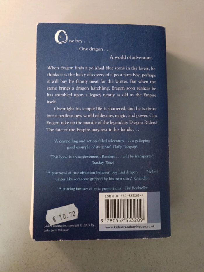 Christopher Paolini Eragon. Livre en anglais. Voici le lien pour voir tous mes livres pour réduire les frais de port et avoir des réductions automatiques par lot de 3 ou 5 : #romain75015_Livres et #romain75015_livre_en_anglais. Envoi rapide et soigné, bien protégé pour le transport.