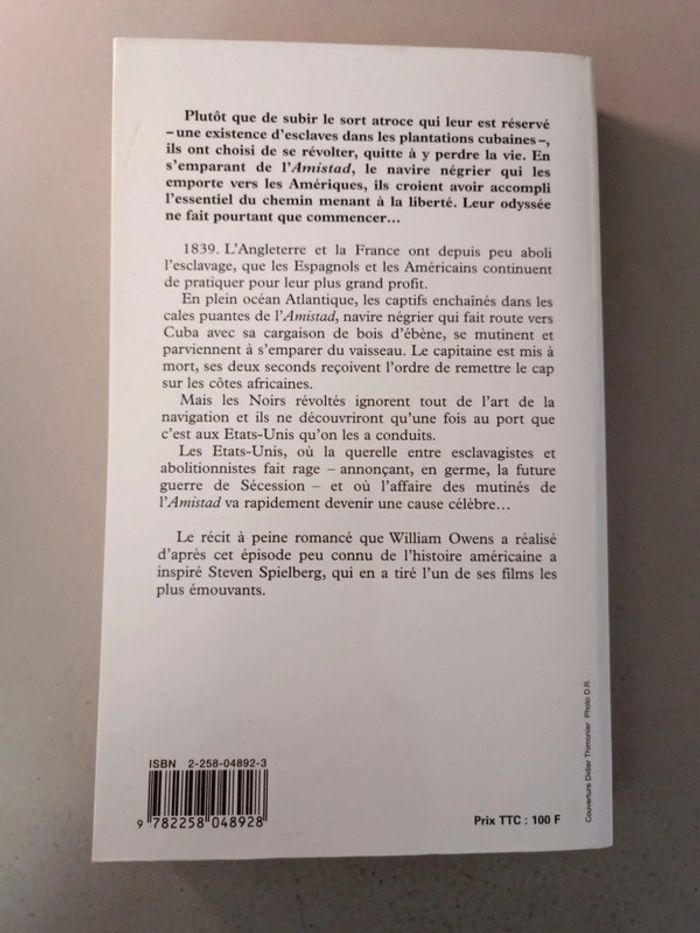 William Owens les Mutinés de l'Amistad. Livre grande taille. Voici le lien pour voir tous mes livres pour réduire les frais de port et avoir des réductions automatiques par lot de 3 ou 5 : #romain75015_Livres. Envoi rapide et soigné, bien protégé pour le transport.