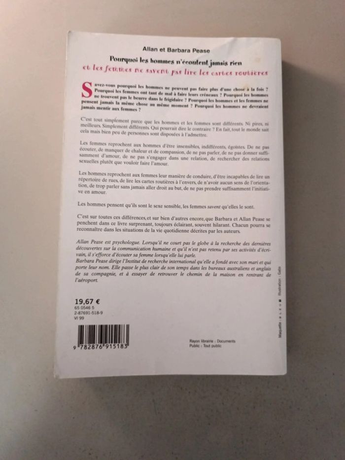 Pourquoi les hommes n'écoutent jamais rien. Livre grande taille. Prix neuf 19,67 €. Voici le lien pour voir tous mes livres pour réduire les frais de port et avoir des réductions automatiques par lot de 3 ou 5 : #romain75015_Livres. Envoi rapide et soigné, bien protégé pour le transport.