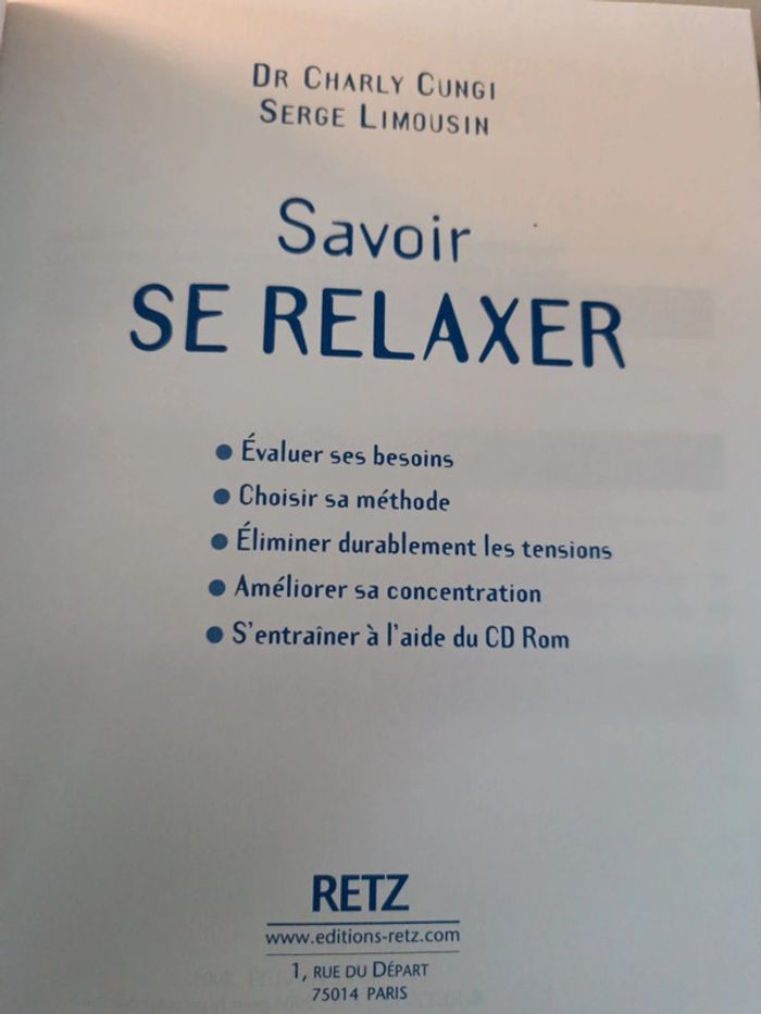 Savoir se relaxer. Voici le lien pour voir tous mes livres : #romain75015_Livres et #romain75015_santé. Envoi rapide et soigné bien protégé pour le transport. N'hésitez pas à faire un lot pour avoir des réductions et mutualiser les frais de port.