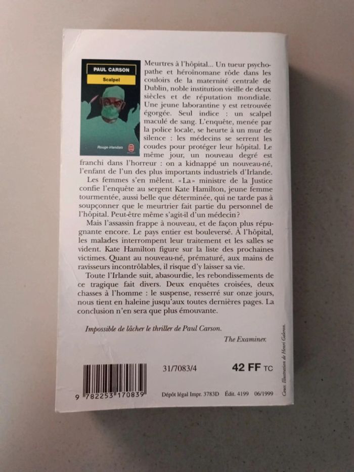 Paul Carson Scalpel. Voici le lien pour voir tous mes livres : #romain75015_Livres. Envoi rapide et soigné bien protégé pour le transport. N'hésitez pas à faire un lot pour avoir des réductions et mutualiser les frais de port.