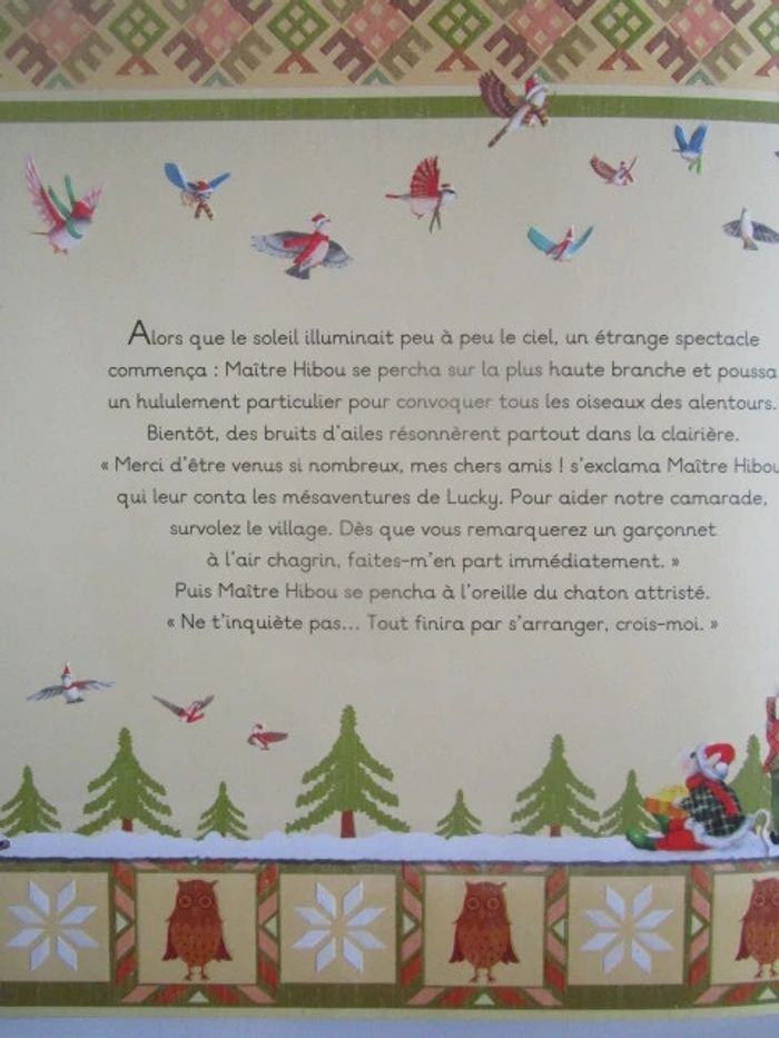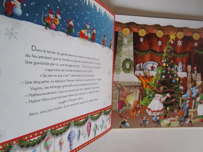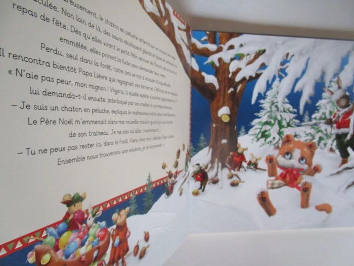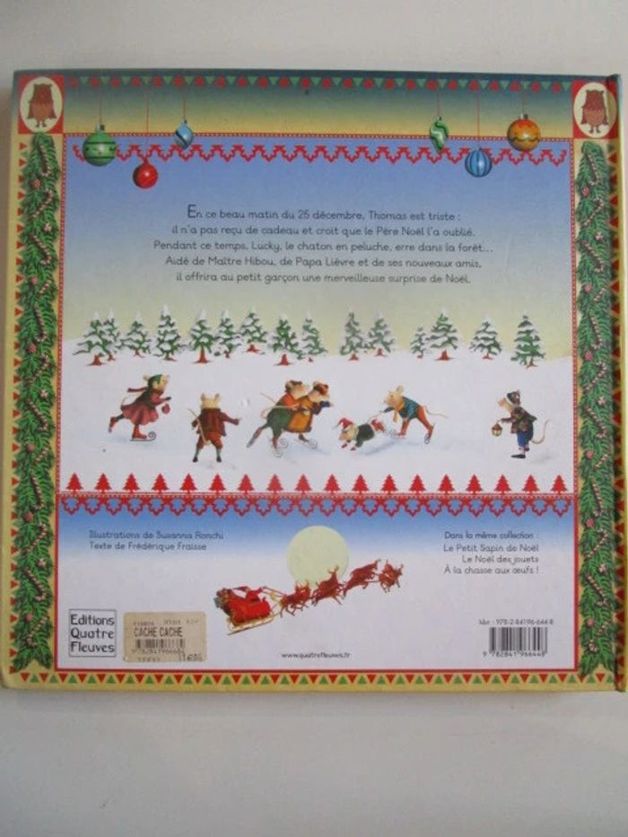 En ce beau matin du 25 décembre, Thomas est triste : il n'a pas reçu de cadeau et croit que le Père Noël l'a oublié. Pendant ce temps, Lucky, le chaton en peluche, erre dans la forêt.... Aidé de Maître Hibou, de Papa chèvre et de ses nouveaux amis, il offrira au petit garçon une merveilleuse surprise de Noël. Éditeur ‏ : ‎ Quatre Fleuves 21 pages Âge de lecture ‏ : ‎ 2 - 5 ans Dimensions ‏ : ‎ 30.5 x 1.5 x 30.5 cm Livre en excellent état Je vends d'autres livres de Noël #phil_peg_noel #noel #sapin #chaton #quatrefleuves
