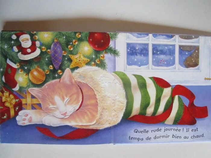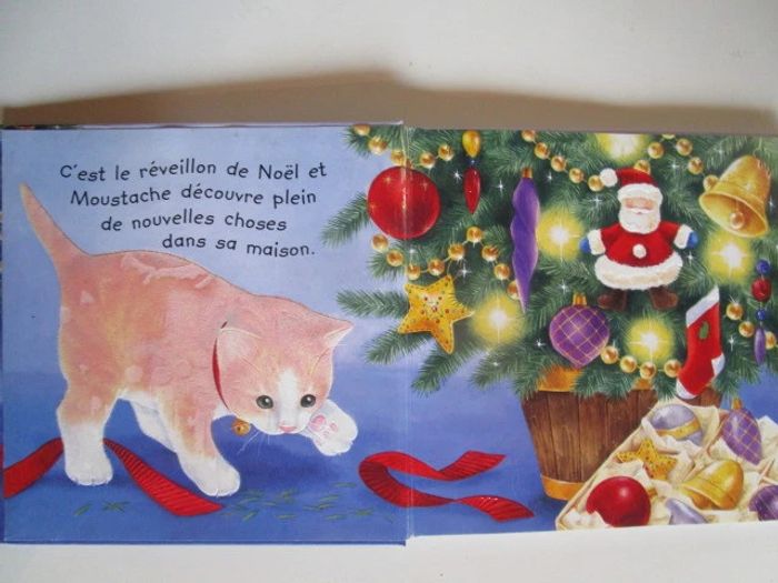 Que de surprises pour le premier Noël de Moustache! Il trouve près de l'arbre de Noël un nouveau territoire de jeu. Les paquets-cadeaux, les aiguilles du sapin, un ruban rouge... et une mystérieuse rencontre avec le père Noël que Moustache n'oubliera pas de sitôt ! Éditeur ‏ : ‎ GRUND JEUNESSE 12 pages Âge de lecture ‏ : ‎ 3 - 5 ans Dimensions ‏ : ‎ 24 x 1.2 x 24 cm Livre en parfait état Je vends d'autres livres de Noël #phil_peg_noel #noel #sapin #chat