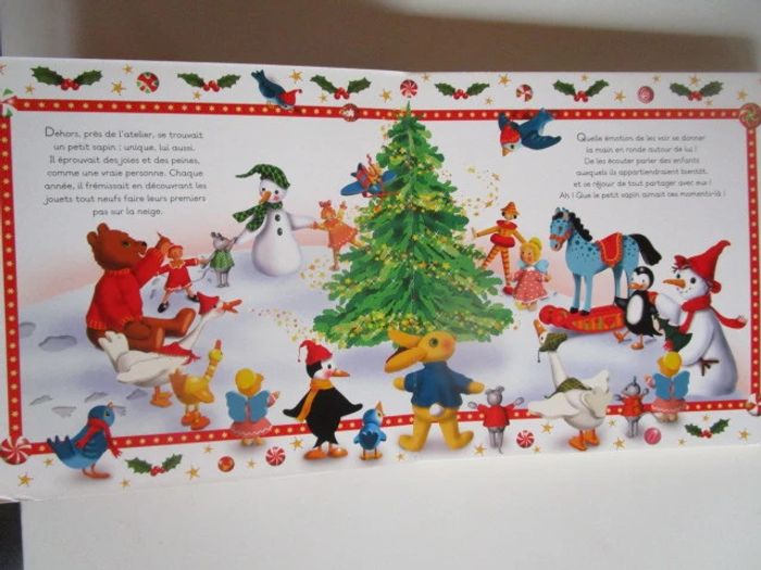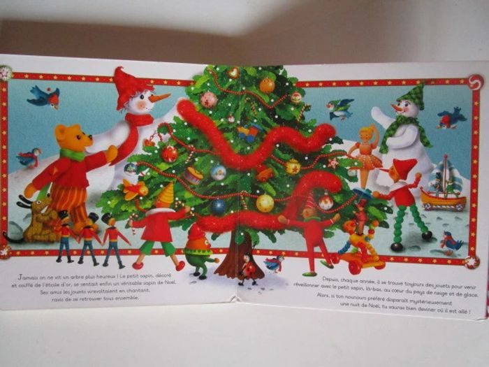 "Pourquoi suis-je toujours seul le jour de Noël, se lamentait le Peiti Sapin". Cette année-là, les jouets du Père Noël décidèrent d'offrir à leur ami un merveilleux cadeau... Éditeur ‏ : ‎ Quatre Fleuves Cartonné ‏ : ‎ 24 pages Âge de lecture ‏ : ‎ 1 - 5 ans Dimensions ‏ : ‎ 20.3 x 1.8 x 20.3 cm Livre tout carton en bon état (Tranches et bords blanchis) Je vends d'autres livres de Noël #phil_peg_noel #noel #sapin