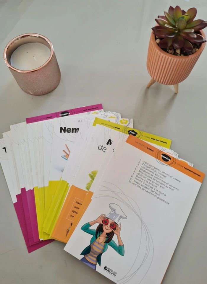 Fiches de recettes - Je cuisine pour mes copains Les recettes d'Emma Contient : 50 fiches de recettes, 3 intercalaires, illustrées recto-verso Boite verticale en métal laqué avec couvercle En très bon état #virginie2220livres