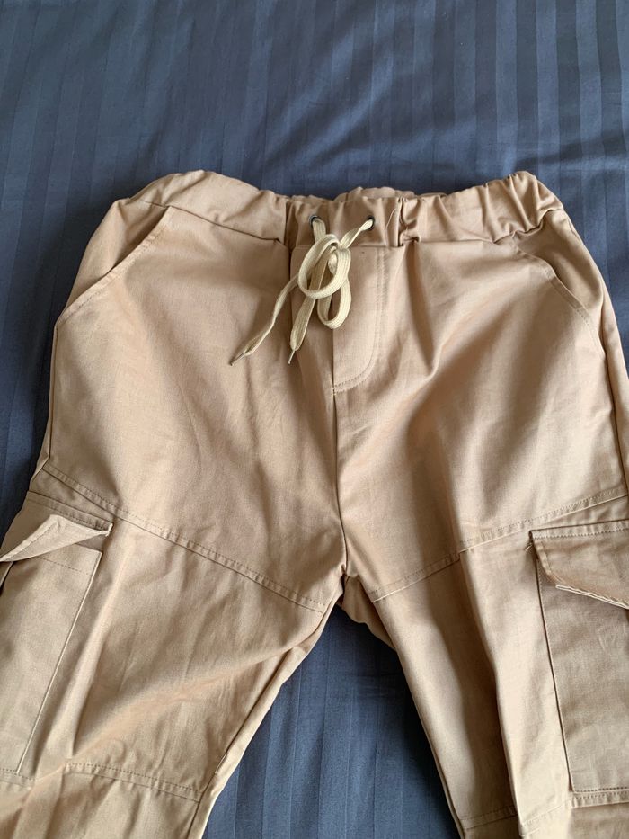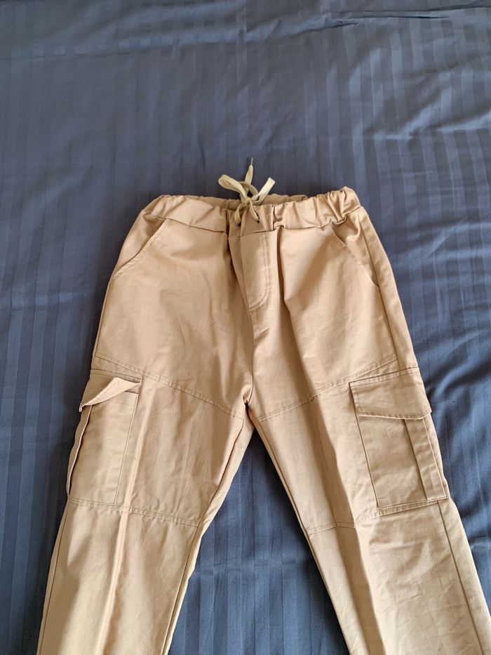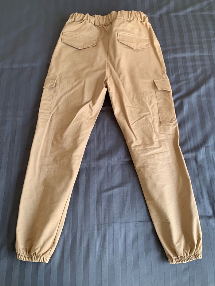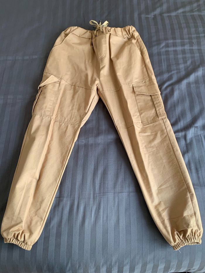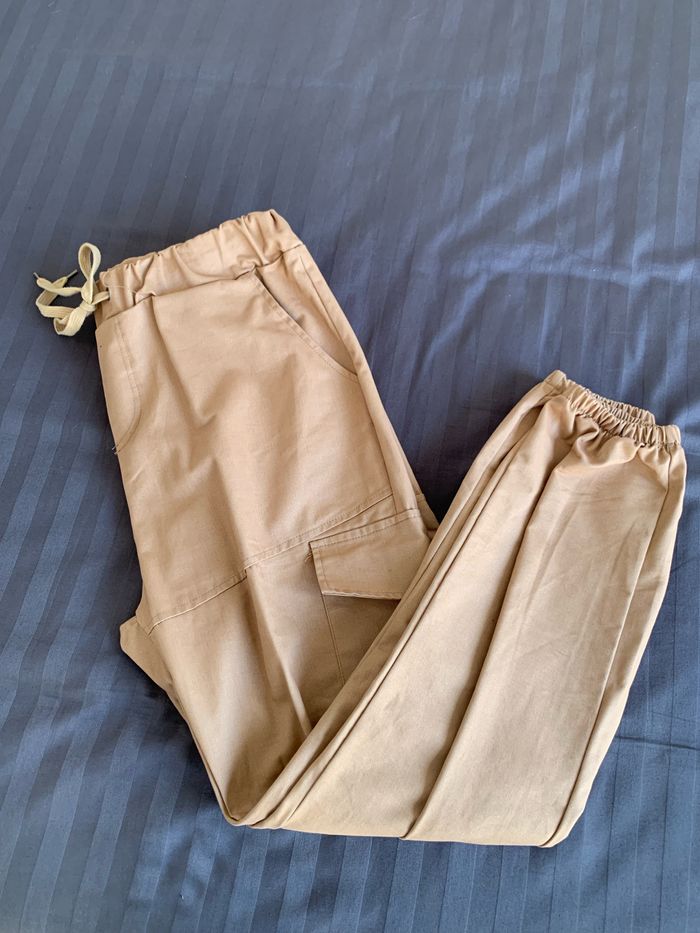 Pantalon beige foncé avec la bas du pantalon serré, taille XL, taille 42/44 car élastique, pantalon neuf