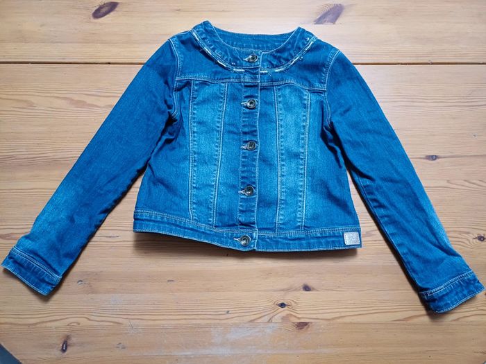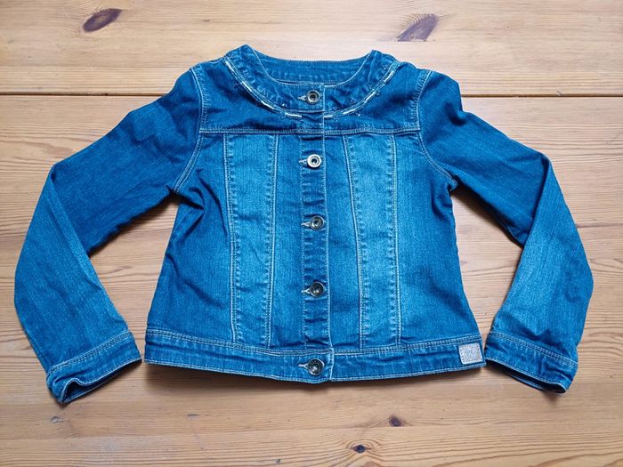 Veste en jean sans col. Taille 8 ans / 126 cm mais vaut taille 6/7 ans.