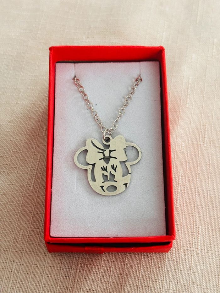 Pendentif Minnie acier inoxydable coffret cadeau Noël collier