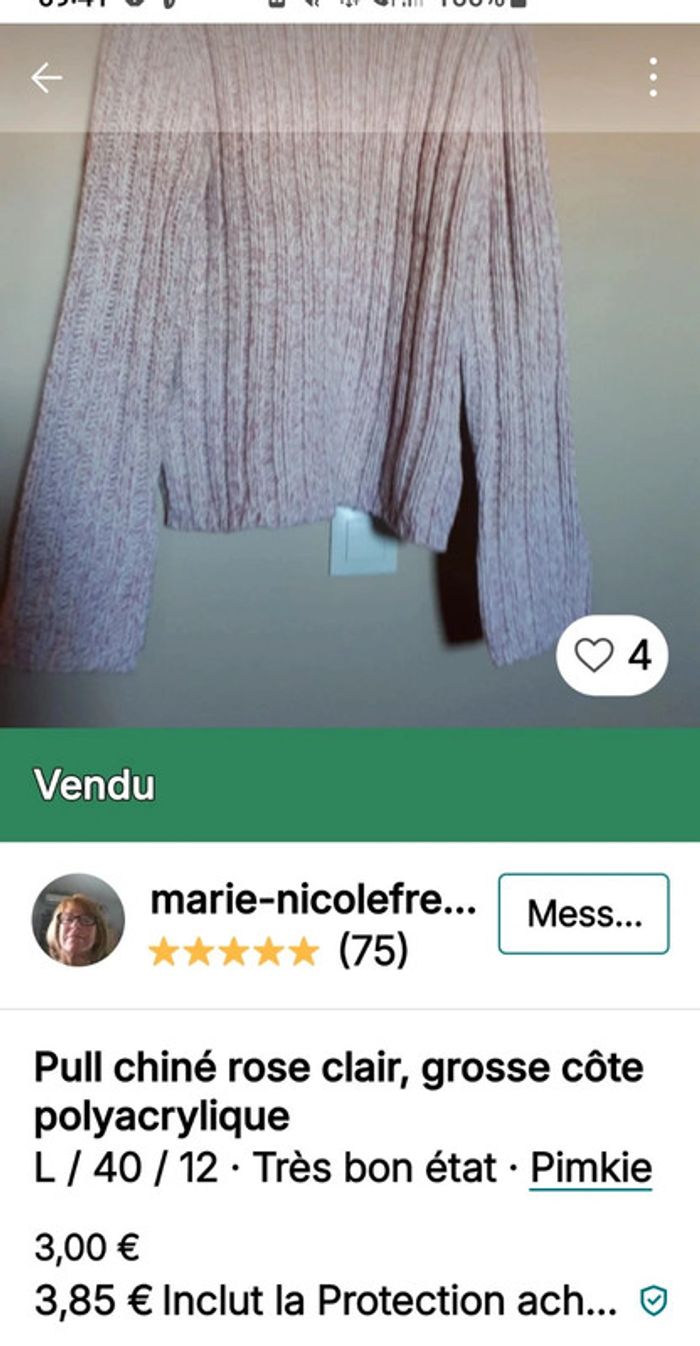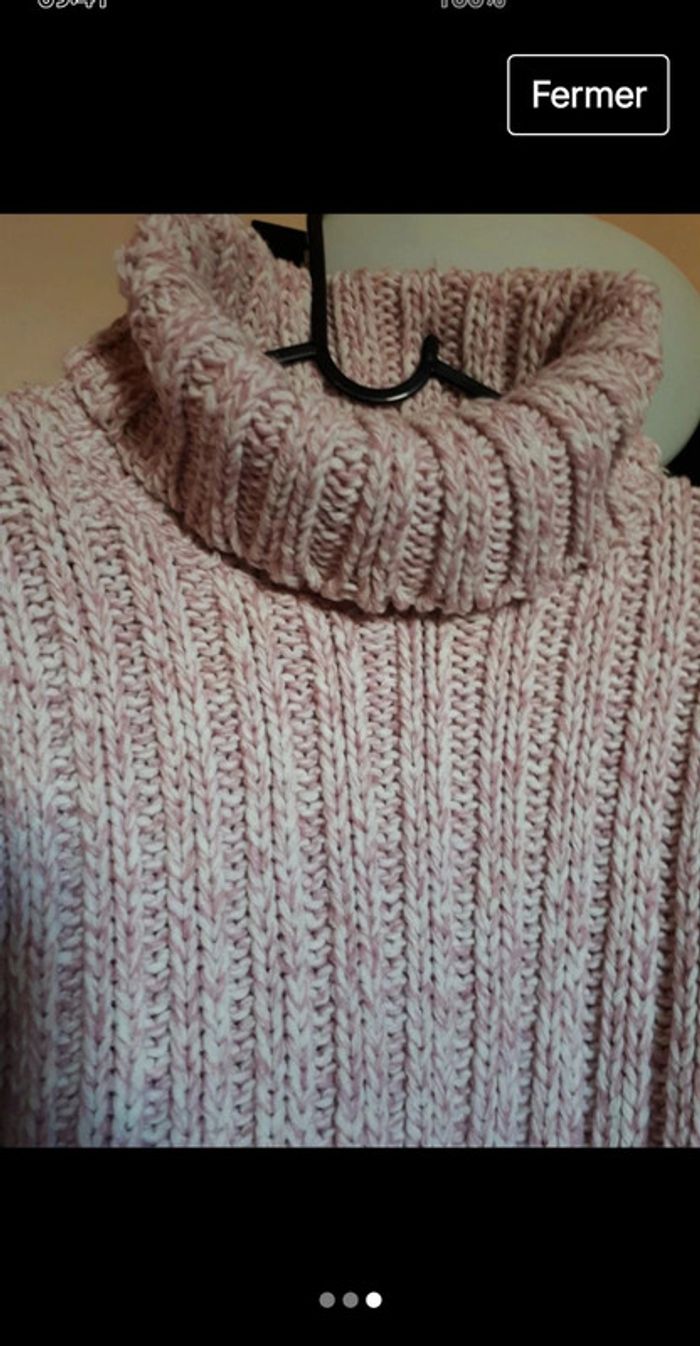 Pull rose chiné grosses côtes taille M - photo numéro 3
