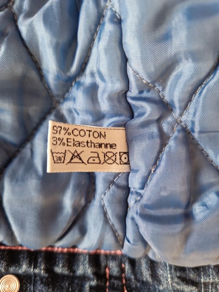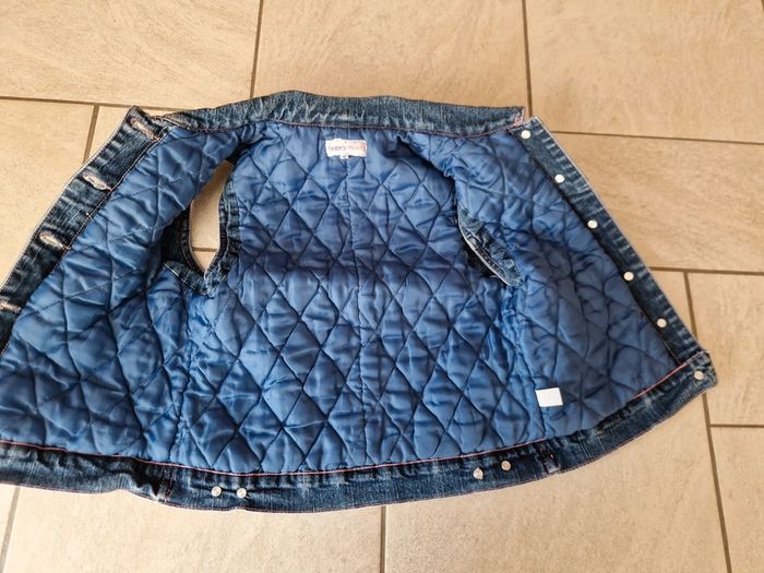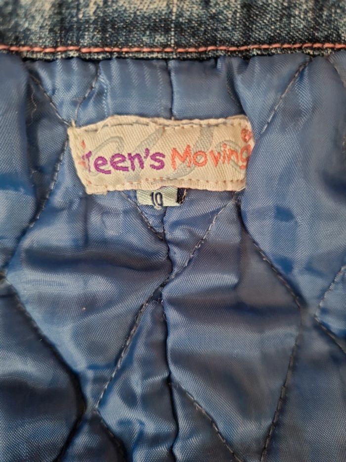 Veste en jeans matelassée, sans manche, 4 poches avant, fermeture par boutons, boutons de serrage de la taille à l'arrière, taille 10 ans , de la marque Teen's moins, en très bon état