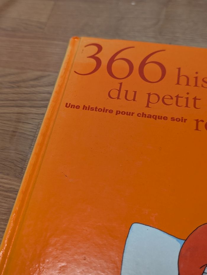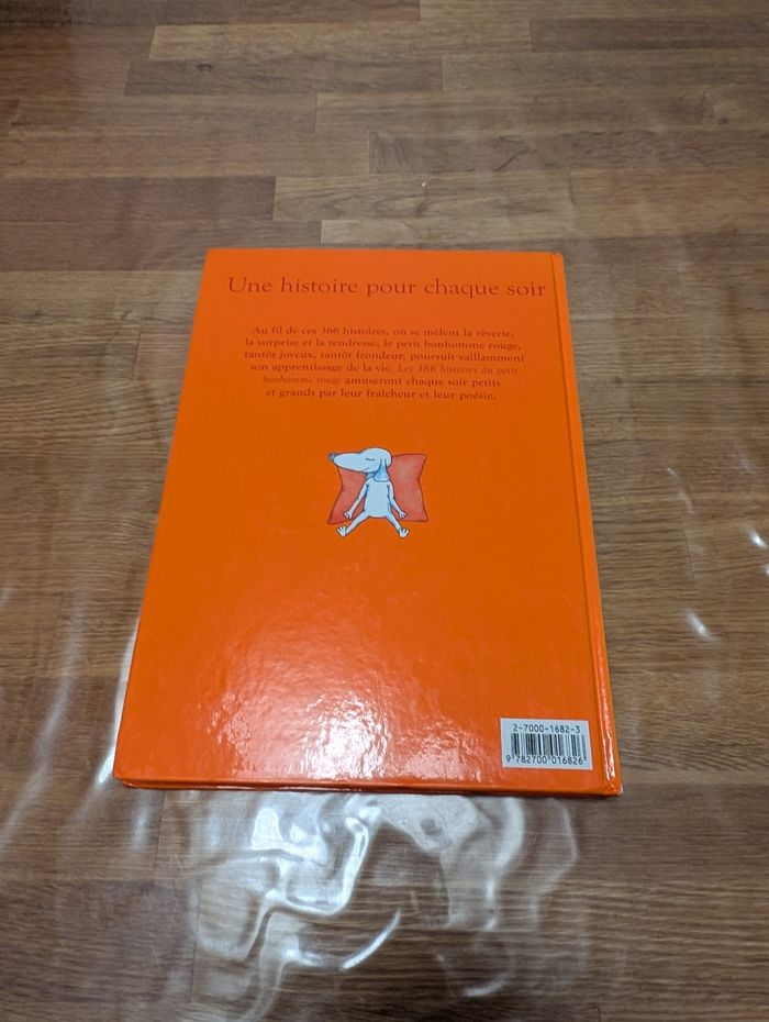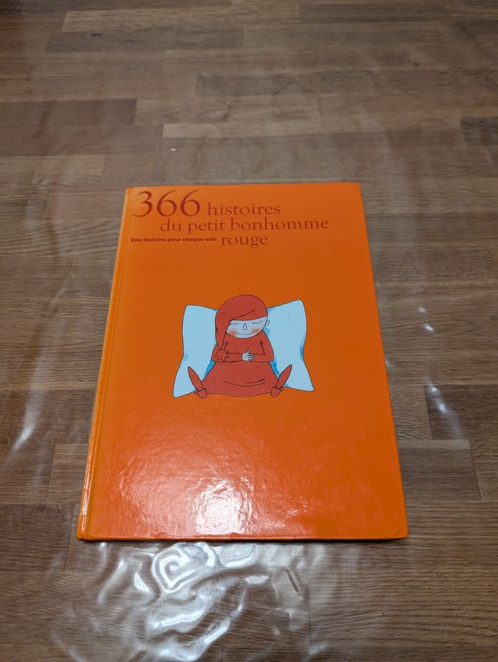 Livre 366 histoires du petit bonhomme rouge Une histoire pour chaque soir Intérieur en très bon état Extérieur abîmé à plusieurs endroits Première page un peu fripée (avant le début du livre)