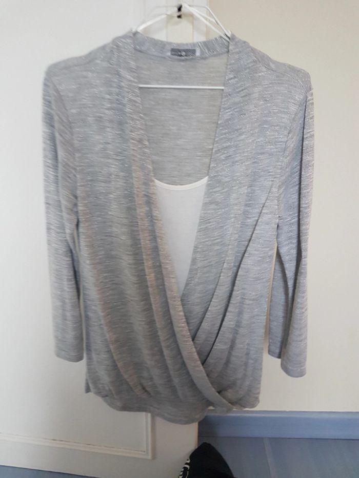 Porté une fois quelques heures Matière légère Plus d'étiquette mais je met un 38 Piqûres argentées dans le gris Manches 3/4 #thethe27femme38
