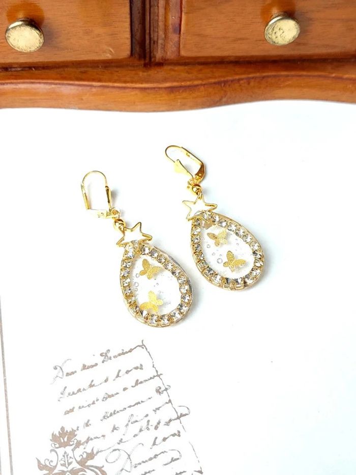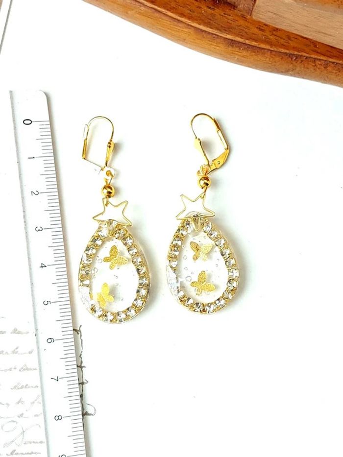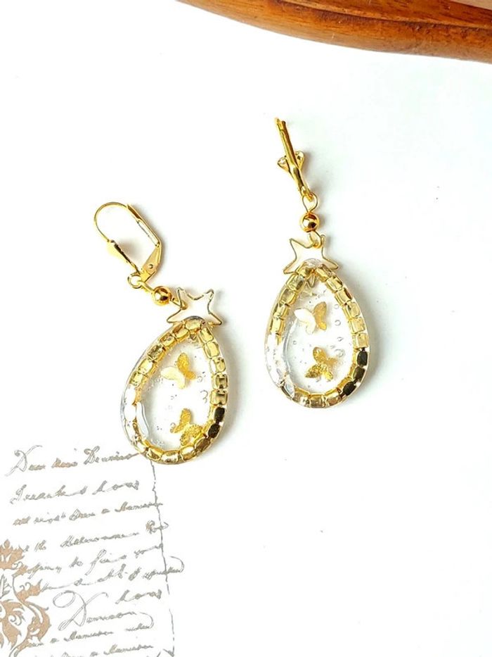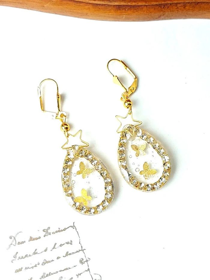 Magnifique paire de boucles d'oreilles pendantes en résine, avec papillon doré. Très bon état. D'autres bijoux sont à découvrir dans mon dressing #bijouxsupernova 🌌 Je suis disponible pour d'autres renseignements / ou demandes de lot. 🌌 Les envois se font soit le jour même ou en 72h maxi ! 🌌 J'accepte les offres raisonnables et les réductions sont activées sur les lots, de plus, un petit cadeau est toujours rajouté au colis. Tags Mode vintage chic hippie 60's 70's 80's 90's BCBG robe chemise pantalon jupe classe bijoux boucles d'oreilles collier pendentif bracelet celtique ethnique bohème ésotérique gothique punk grunge old school geek ancien brocante friperies france Paris parisienne qualité couture tournesol marilyn Monroe astro cosmétiques produits de beauté tissu japon breloque acier inoxydable plaqué or automne hiver printemps été Noël cadeau lune moon child fleurs petit prix réduction lot chouchou scrunchie rétro kawaii japon t-shirt débardeur tunique blouse chemisier camisa camicia vestido vestito pantalones remise lotes jurk Flores brillant coton polyester satin soie jeans elastane sexy élégant pièce rare rome Madrid multicolore noir blanc rouge bleu jaune vert rose orange violet marron pas cher soldes 50% unique look outfit tenue complète conjunto