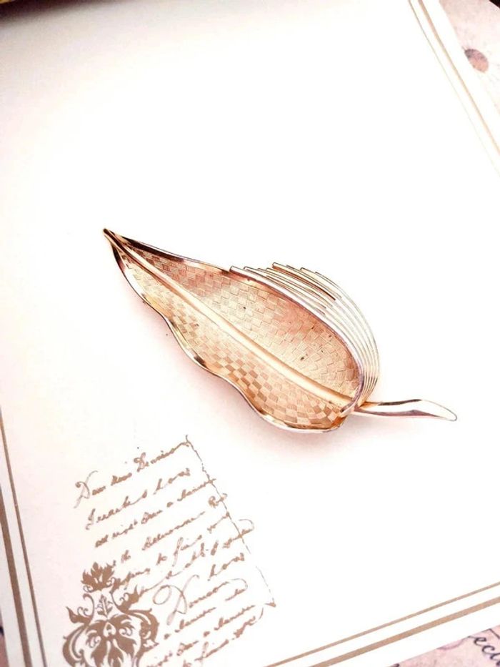 Magnifique broche ancienne doré, feuille avec décor carré dans le métal brossé. Signée Coro (marque vintage américaine de bijoux). Très bon état général. D'autres bijoux sont à découvrir dans mon dressing #bijouxsupernova 🌌 Je suis disponible pour d'autres renseignements / ou demandes de lot. 🌌 Les envois se font soit le jour même ou en 72h maxi ! 🌌 J'accepte les offres raisonnables et les réductions sont activées sur les lots, de plus, un petit cadeau est toujours rajouté au colis. Tags Vintage chic hippie 60's 70's 80's 90's 00's Y2k foulard soie collier bijoux fantaisie signature boucles d'oreilles bague bracelet manchette jonc parure pendentif médaille religieux ancien brocante antiguo antico juwelen bigiotteria joyería antigua antique antik vieux victorien belle époque 1920 art déco art nouveau 1930 années 50 lot gros lot lotto set carré friperie poinçon pièce rare argenté doré bronze perles strass