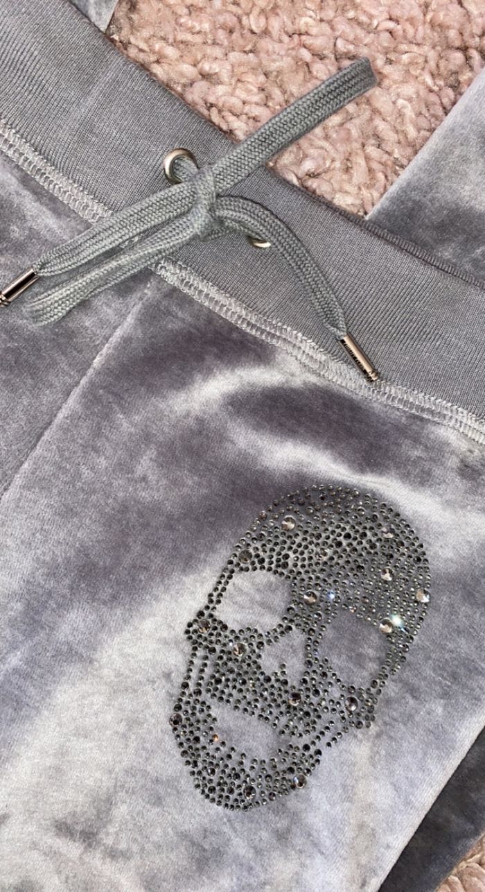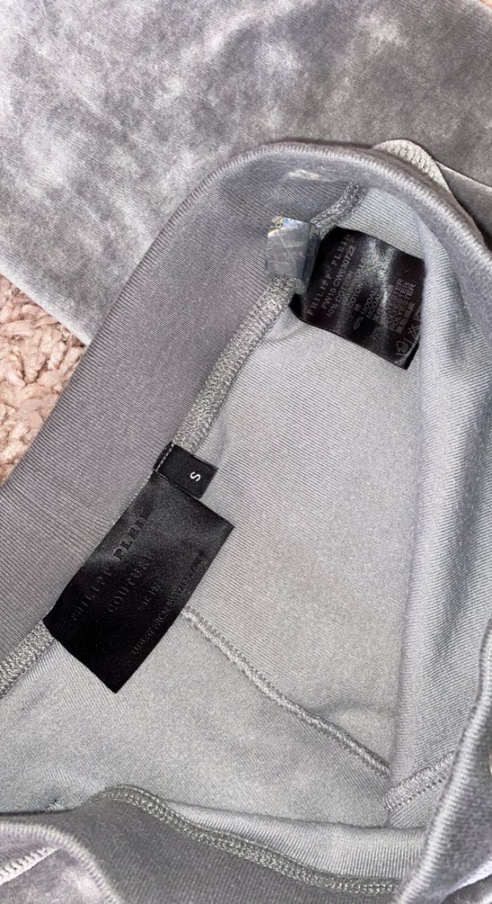 Vend bas de jogging gris souris Philipp plein en taille S en très bon état le bas a été reprit car trop long je mesure 1m55