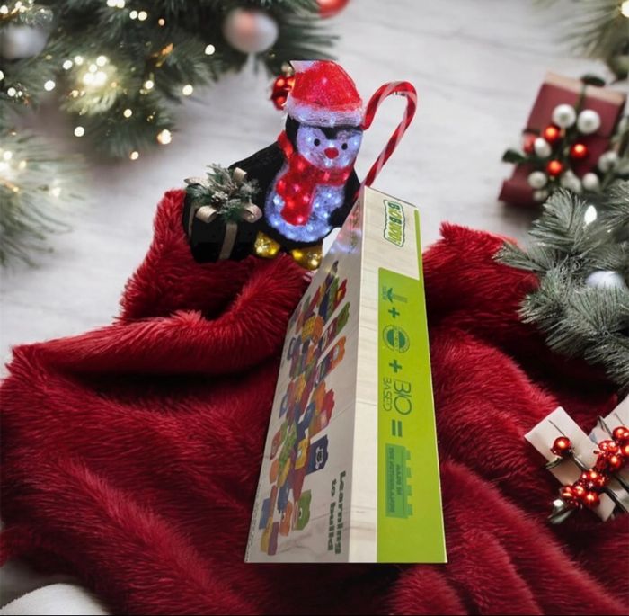 Cet ensemble de jeu comprend 60 blocs qui sont tous fabriqués à partir de matière résiduelle de canne à sucre et sont imprimés avec des images colorées d'animaux, de fruits et bien plus encore. Les blocs viennent en couleurs rouge, orange, jaune, vert, bleu et violet