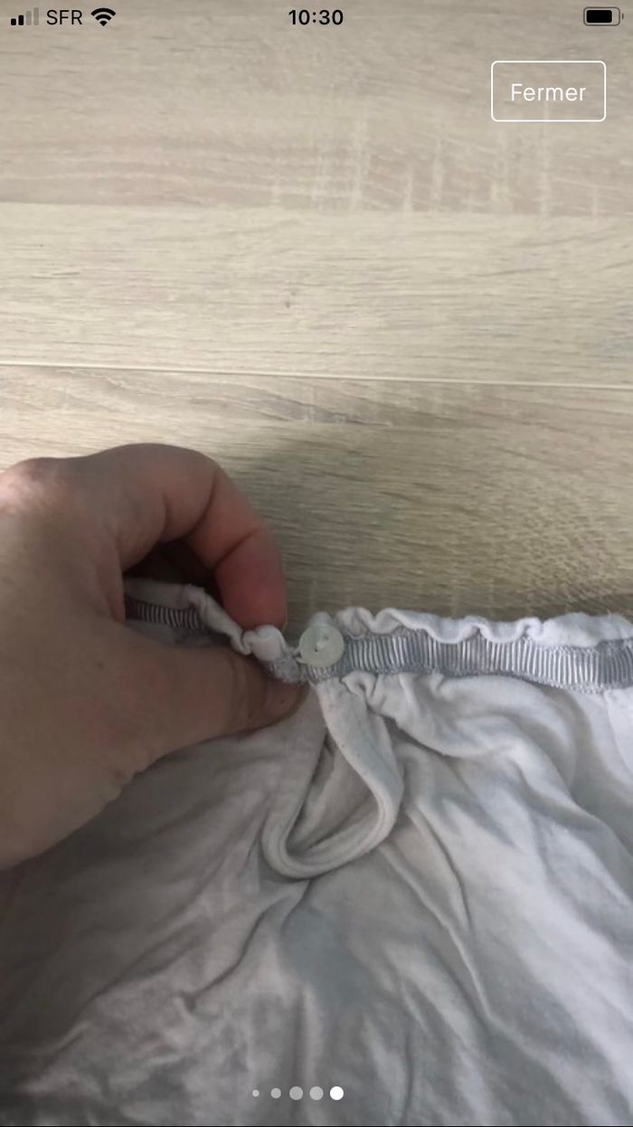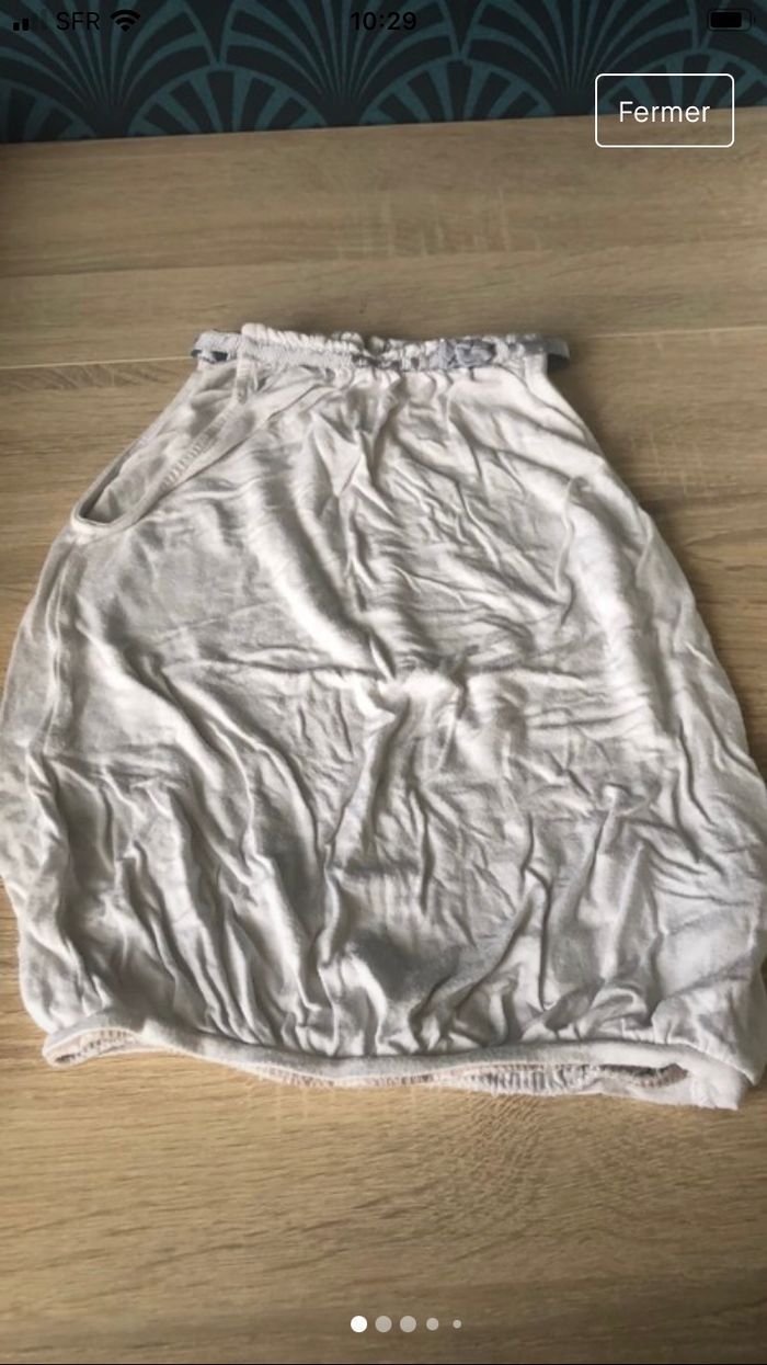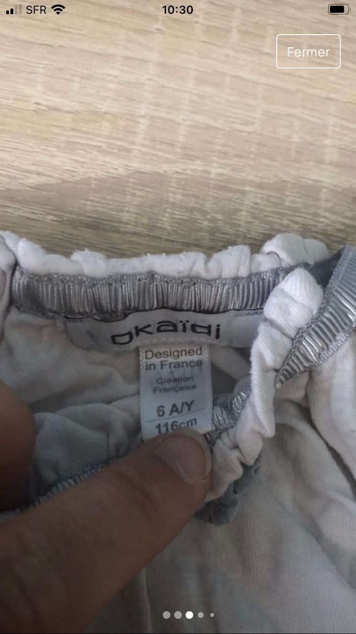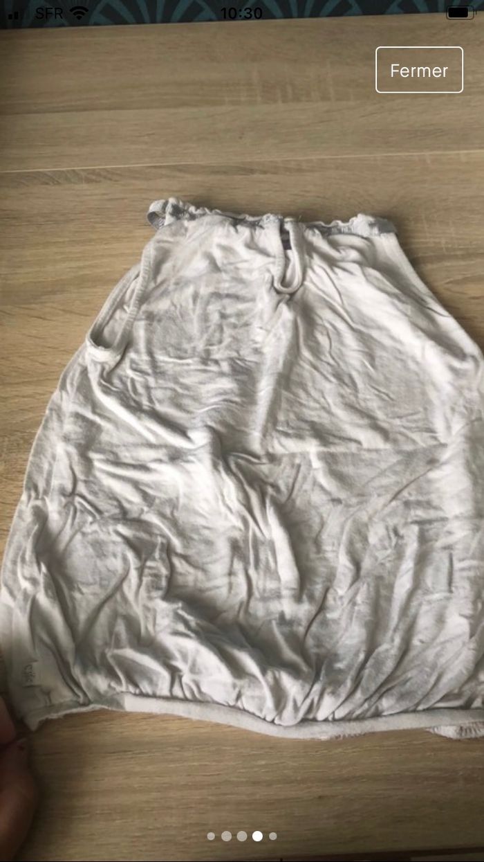 Débardeur fille avec bouton sur l’arrière. Le blanc est un peu passé. Taille 6 ans. Marque okaïdi.