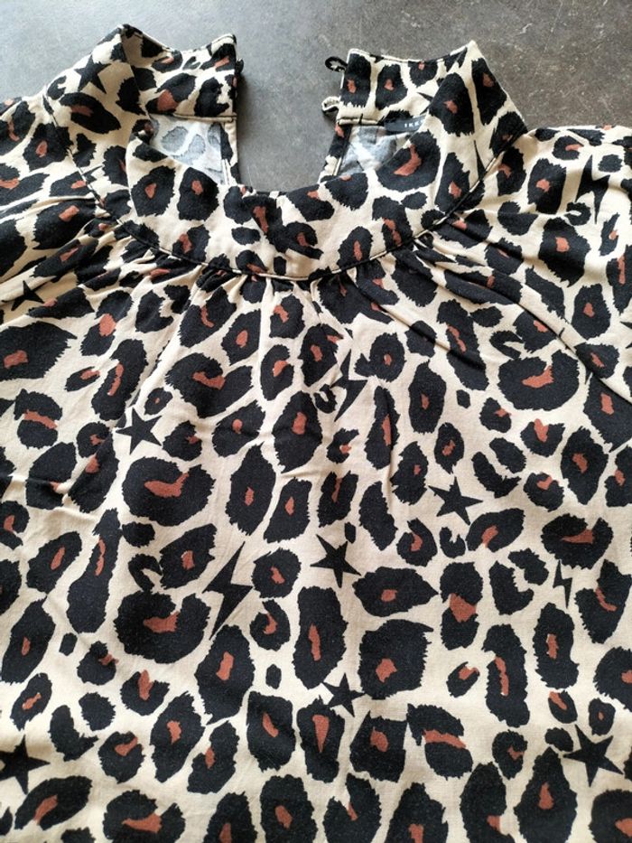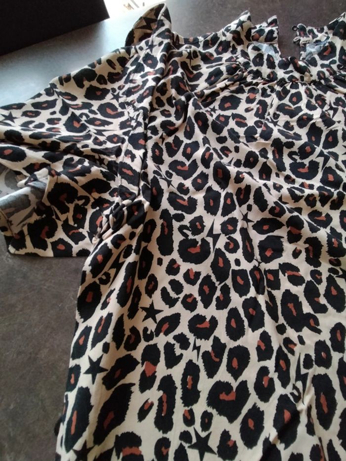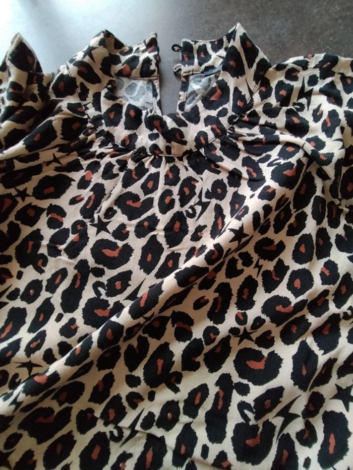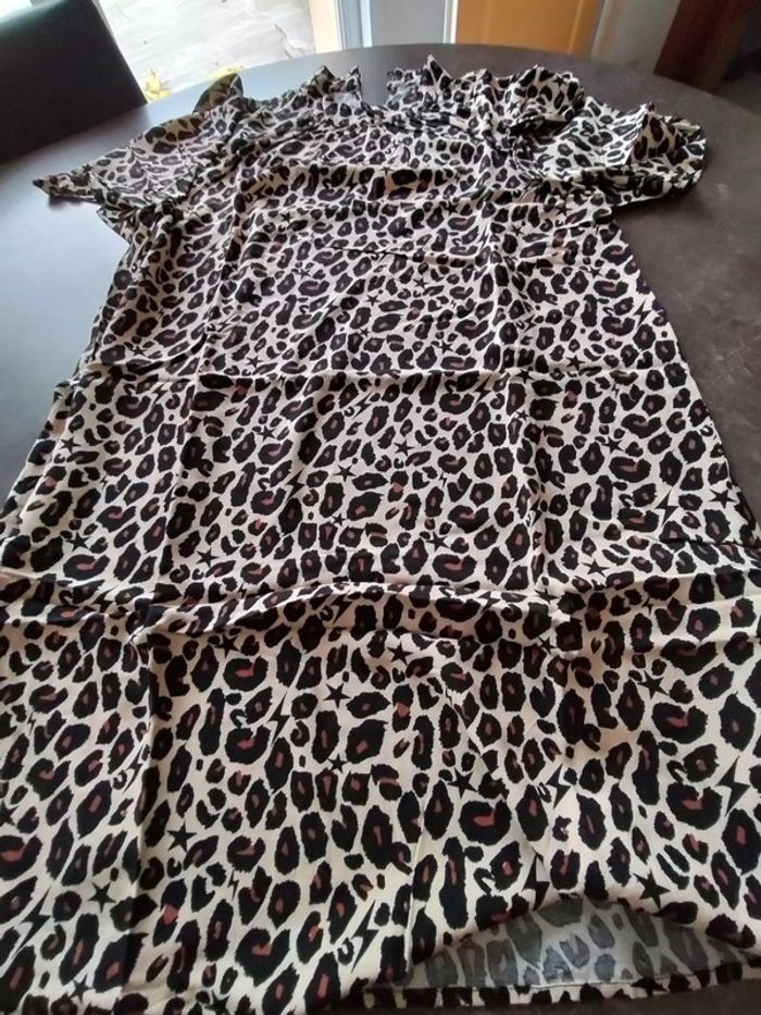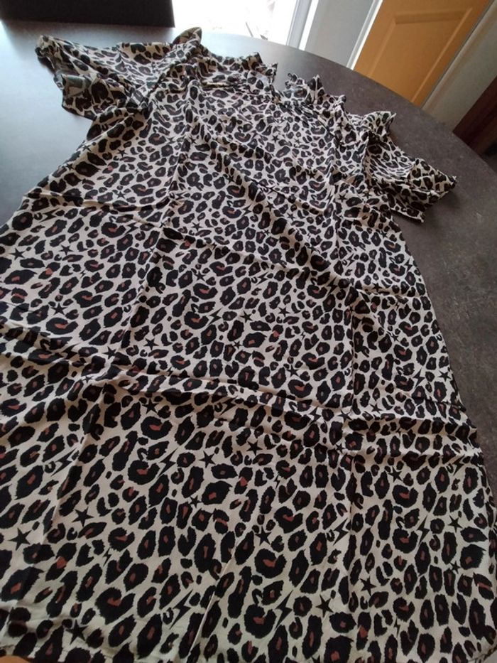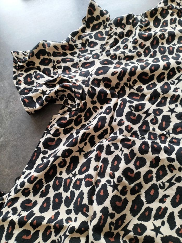 Robe manches courtes Volants au niveau des épaules Col cheminée et 2 boutons Viscose En très bon état Ikks