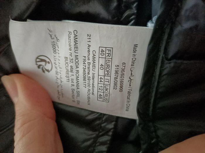 Doudoune légère à capuche noire Camaïeu T. 40 - photo numéro 5