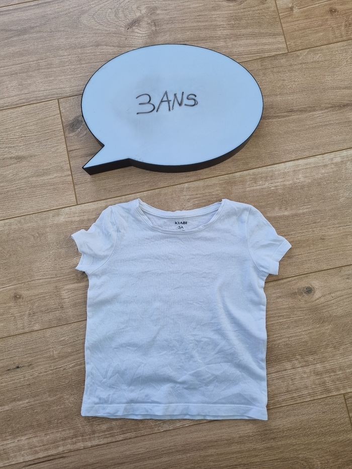 Tee-shirt 👕 manches courtes pour fille 👧🏻 Blanc uni – col rond #harmonie1017fille3ans