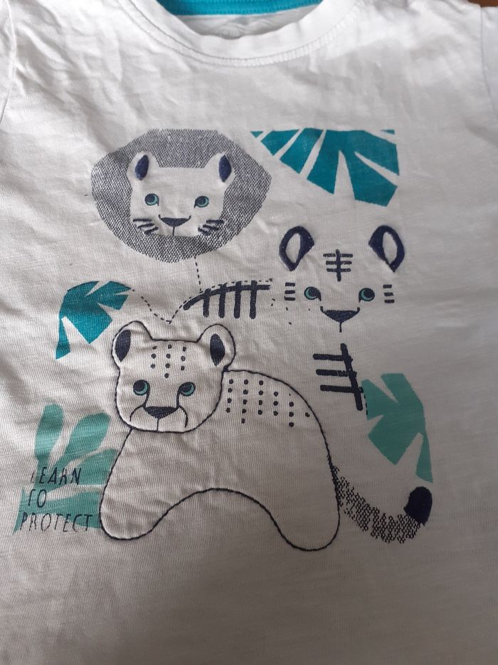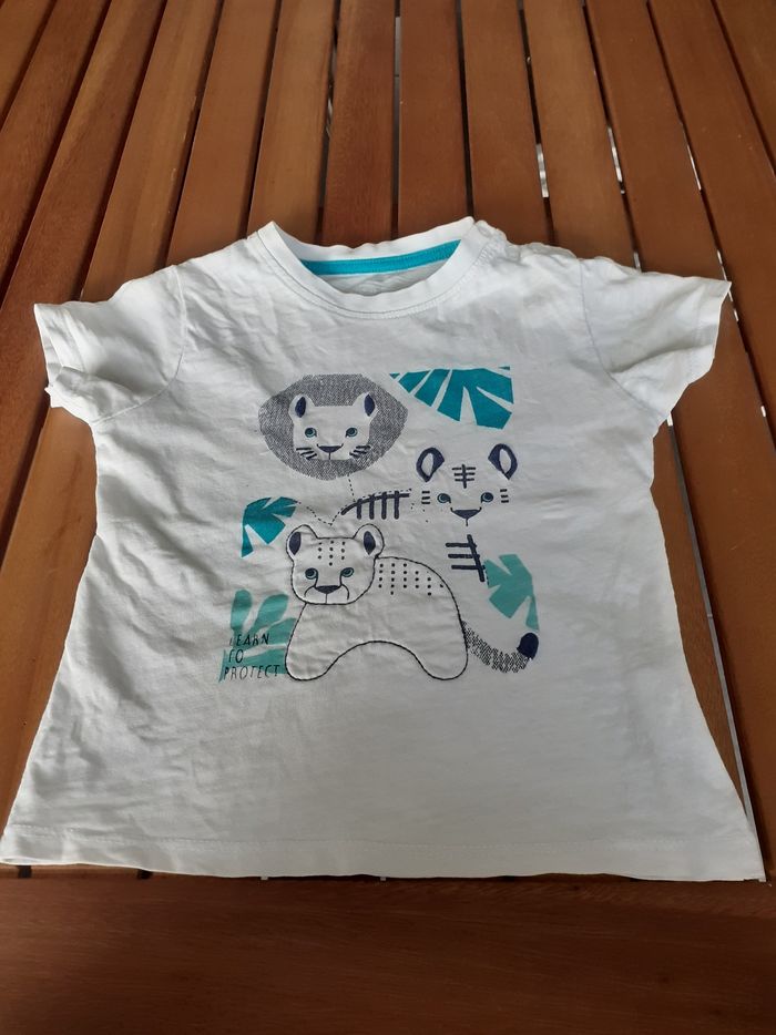 Tee-shirt à manches courtes taille 18 mois en bon état , motif lion abîmé
