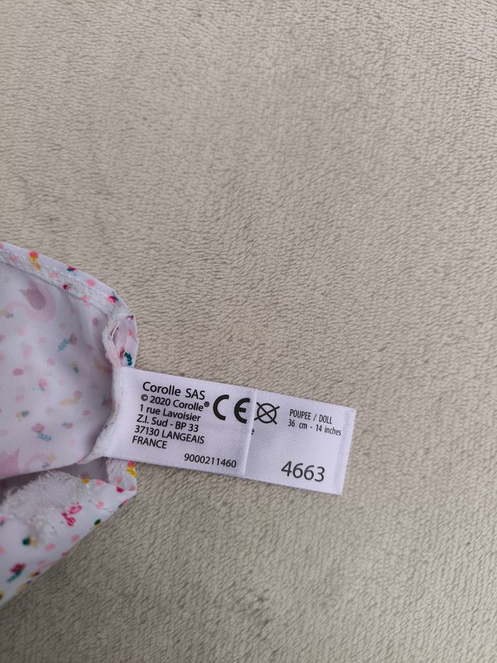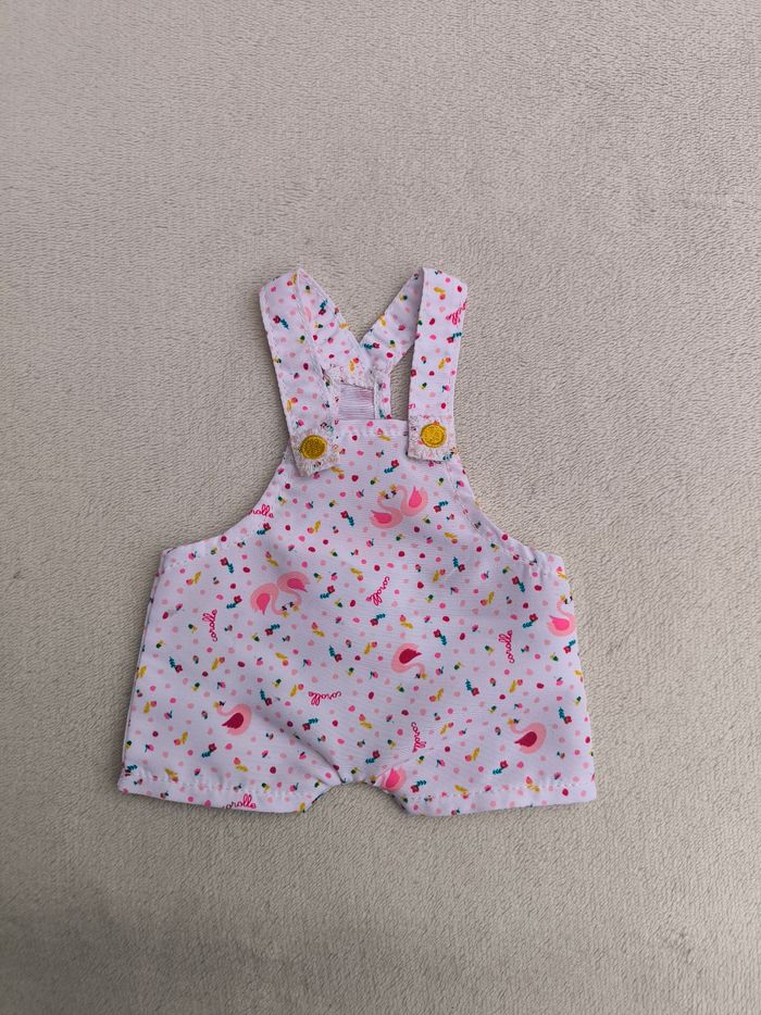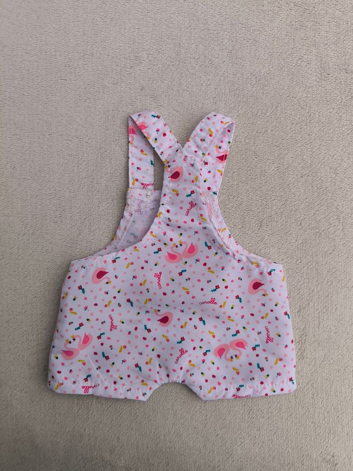 Salopette short d'été à bretelles Marque Corolle Poupon / Poupée : 36 cm Année 2020 • Coloris blanc, rose, jaune • Imprimés cygnes, fleurs, pois/ronds • Bretelles avec scratch En très bon état #evelyne_jeux