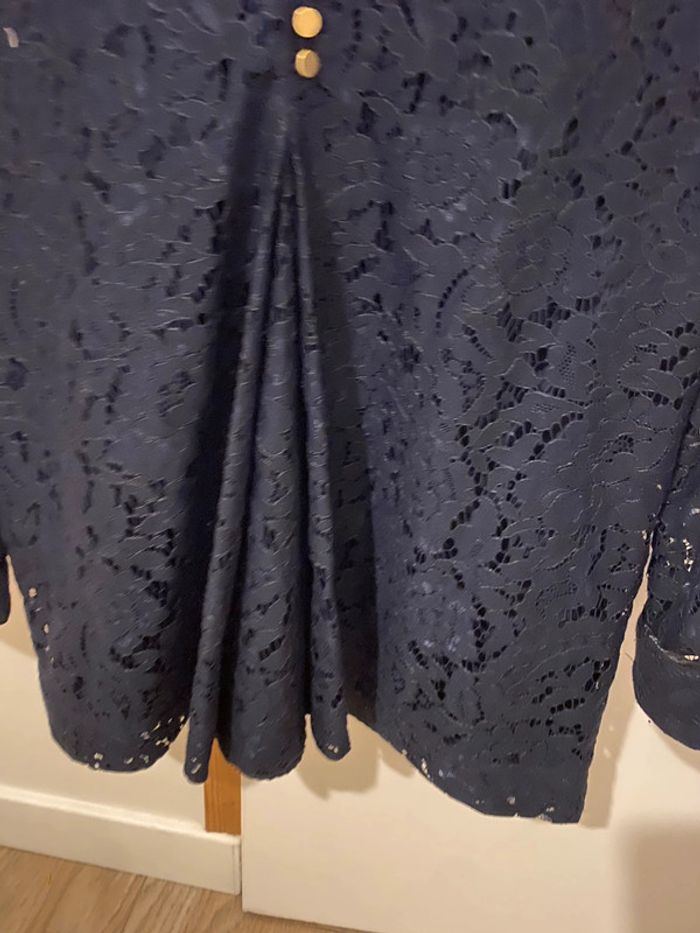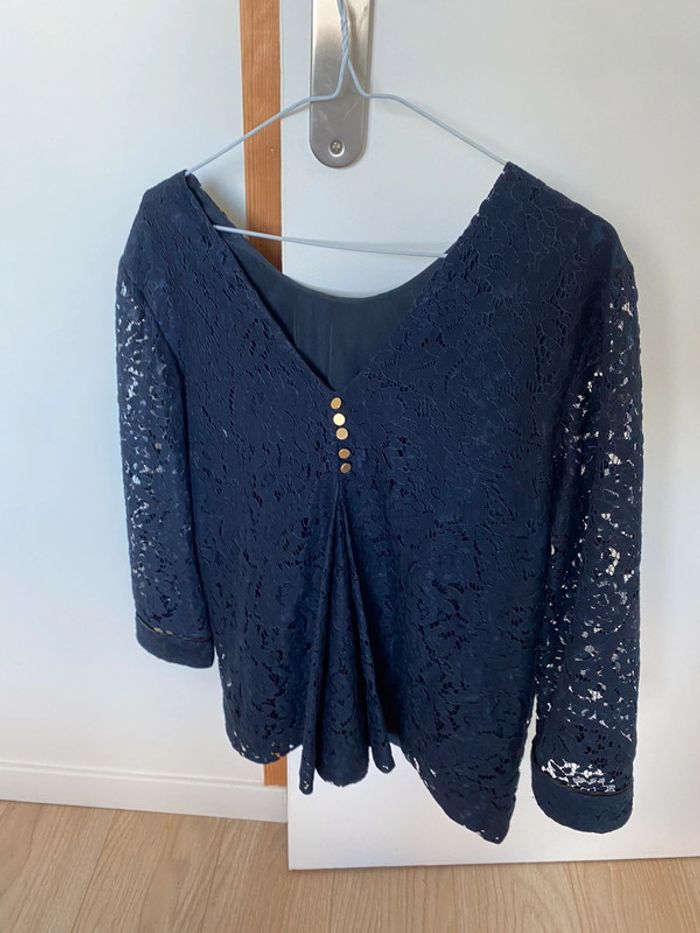 Blouse Sezane dentelle en très bon état Marine , taille 38 Boutons dorés manches et rappel au dos plissé