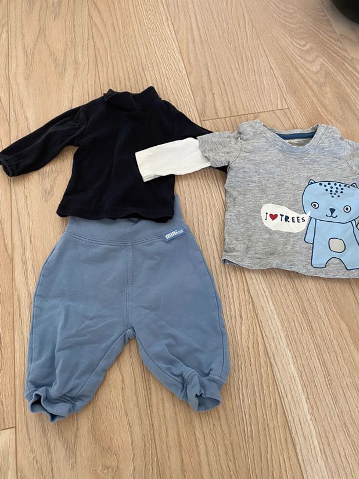 Tenue 1 mois confort jogging bleu, t shirt gris , sous pull noir