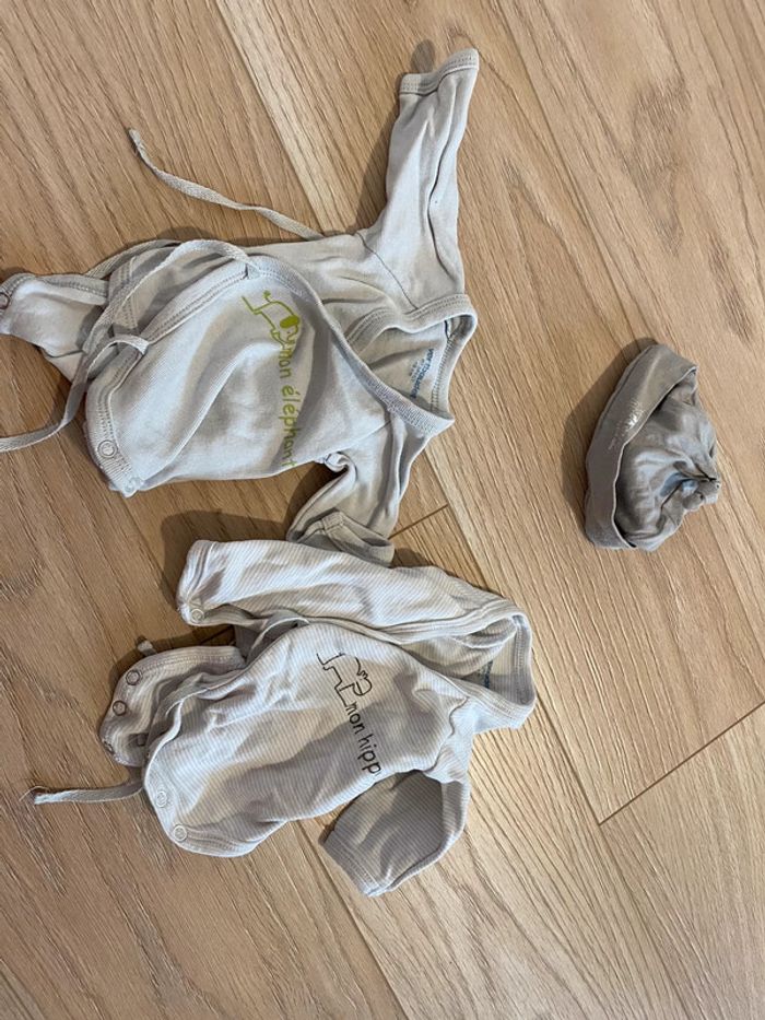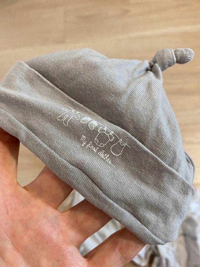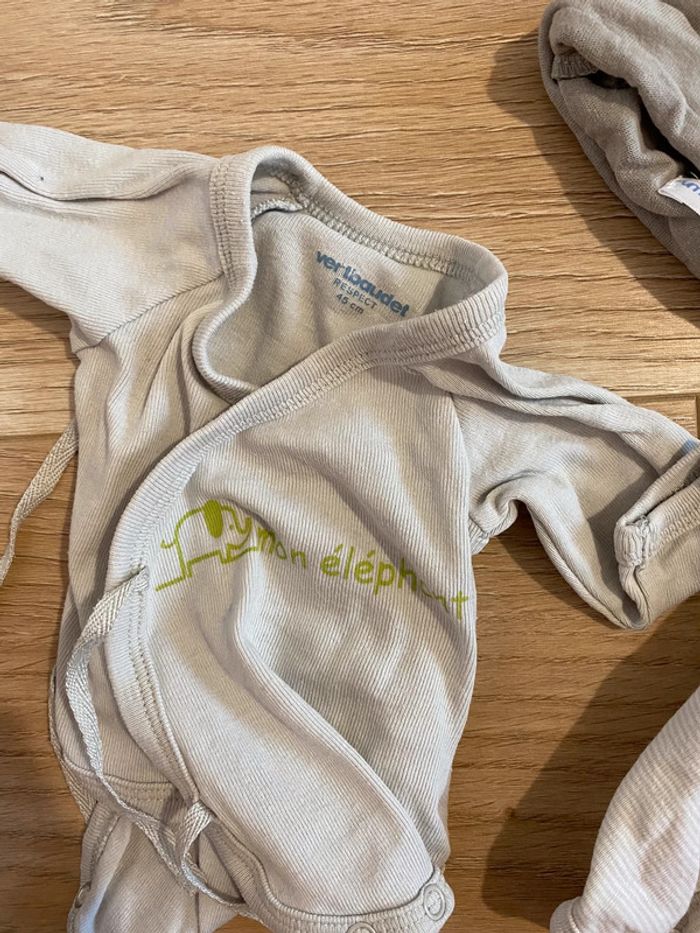 lot de 2 bodys + bonnet prema vertbaudet en super etat gris donc mixte