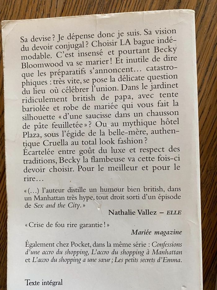 lot de 4 livres de l’auteur Sophie Kinsella l’accroc du shopping à une sœur l’accroc du shopping dit oui l’accroc du shopping à Manhattan les petits secrets d’Emma