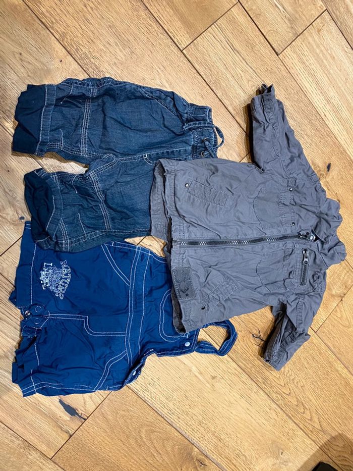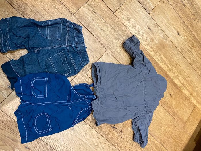 jean 6 mois obaibi en très bon etat salopette 6 mois short marine en très bon etat veste 6 mois marque kitchoun très bon état gris
