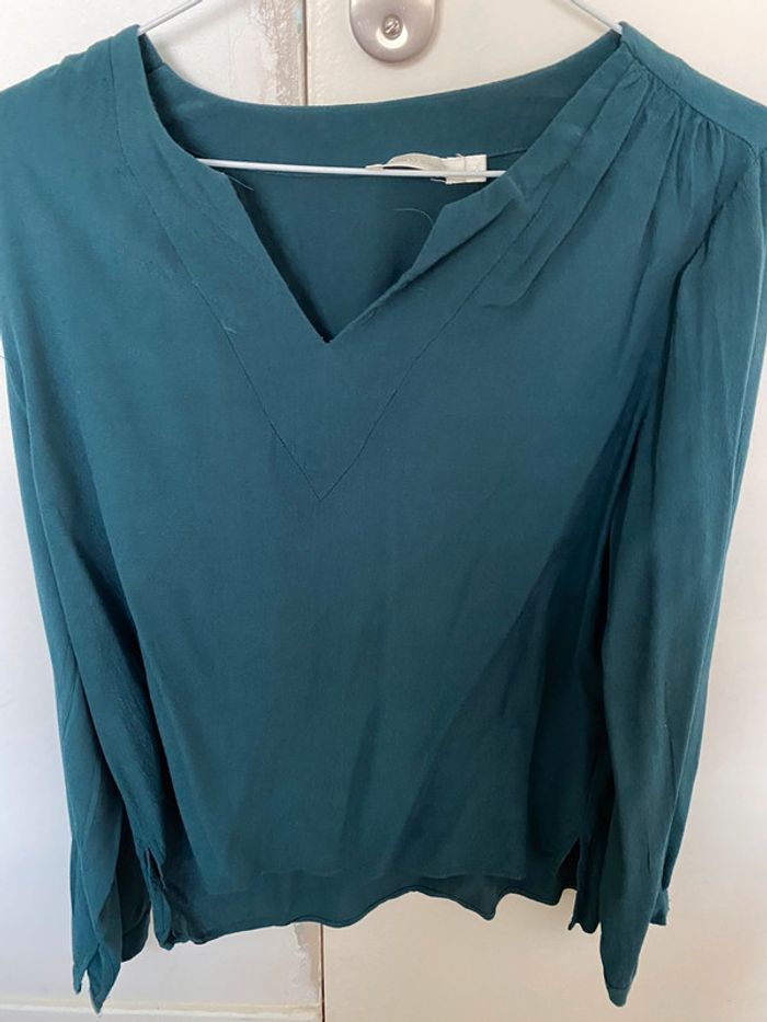 blouse ML portée une fois mais trop petite taille 0 soit 36 bleu canard