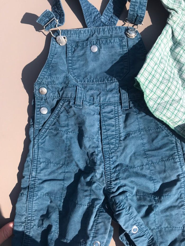 salopette, gilet et chemise petit bateau en 6 mois chemise et salopette sont neufs et gilet peu porté