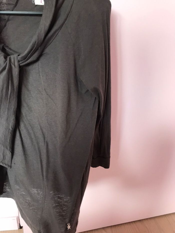 t shirt manche 3/4 des petits hauts gris anthracite, matière douce col type foulard T1 porté mais en très bon état