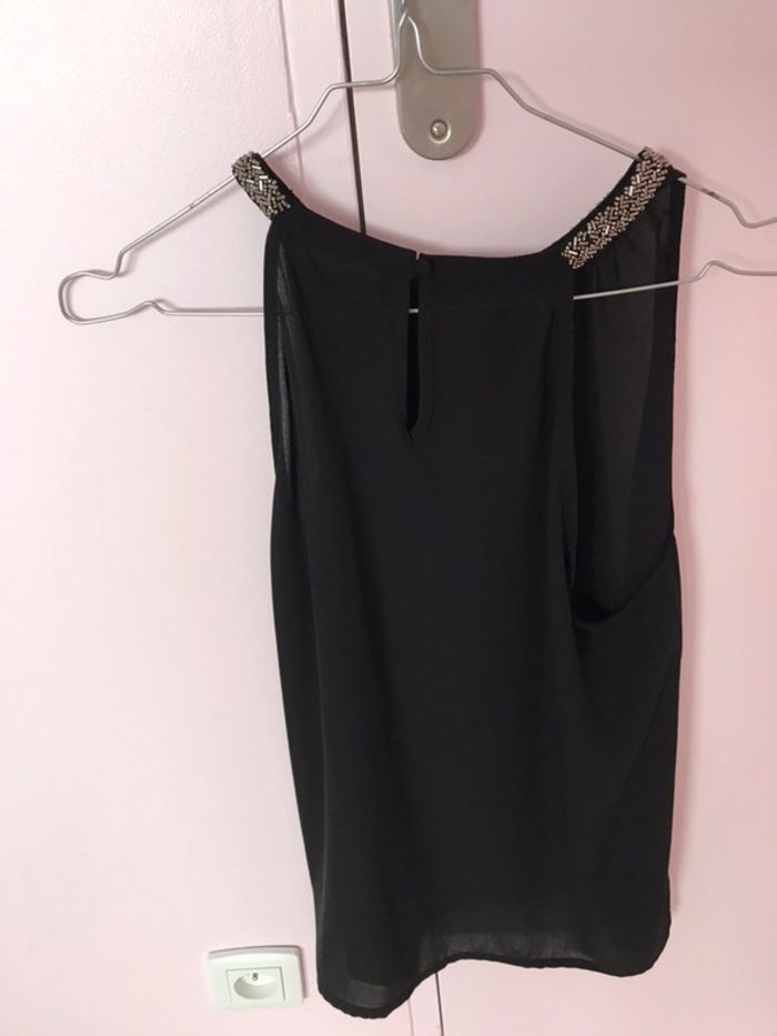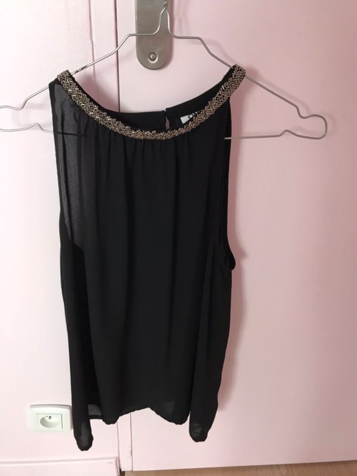 débardeur fluide noir Only super état encolure argentée en perles taille 38