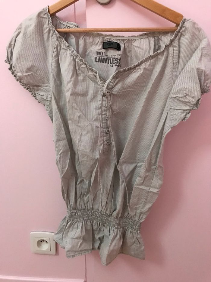 Blouse Only grise et blanche rayures M - photo numéro 1