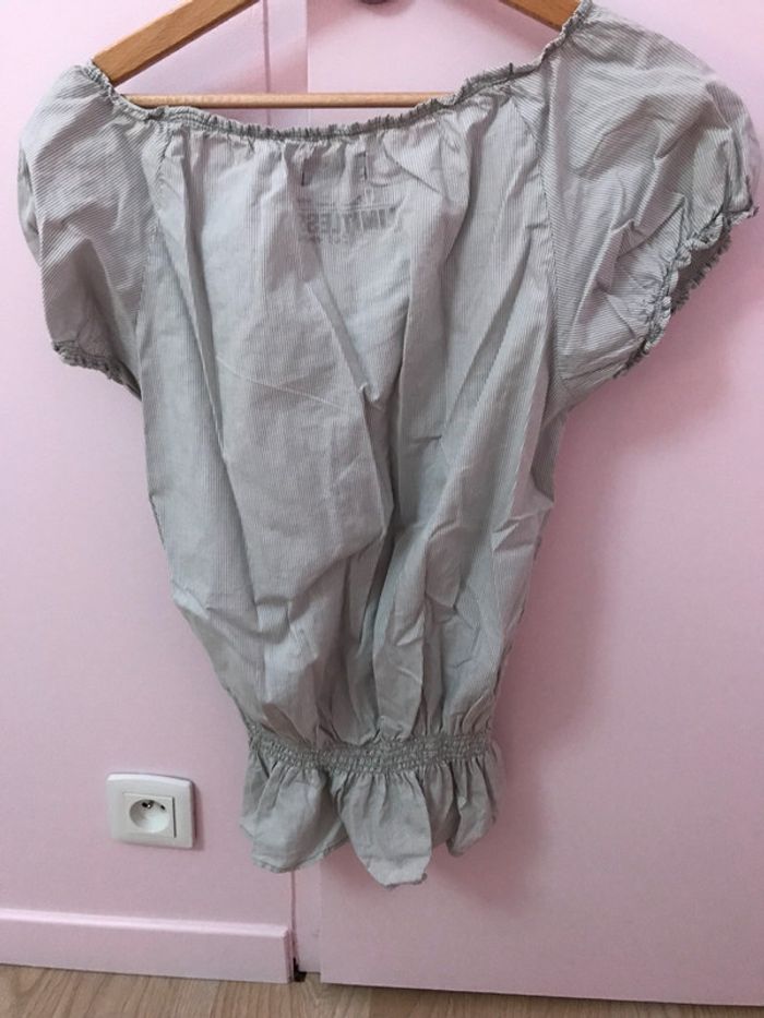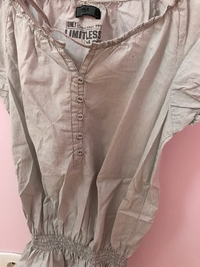Blouse Only grise et blanche rayures M - photo numéro 2